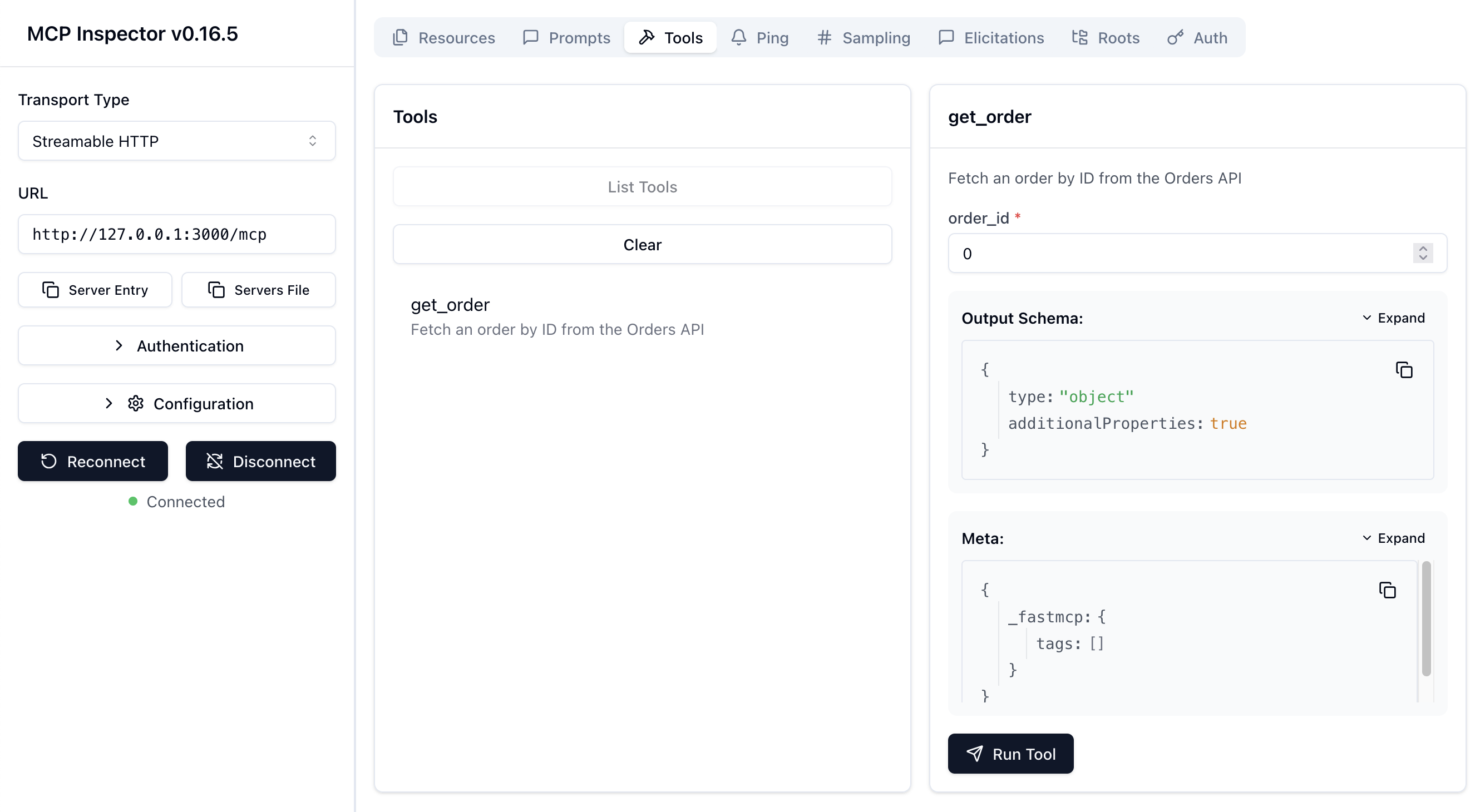 If everything is set up correctly, you should see the MCP Inspector interface in your browser at